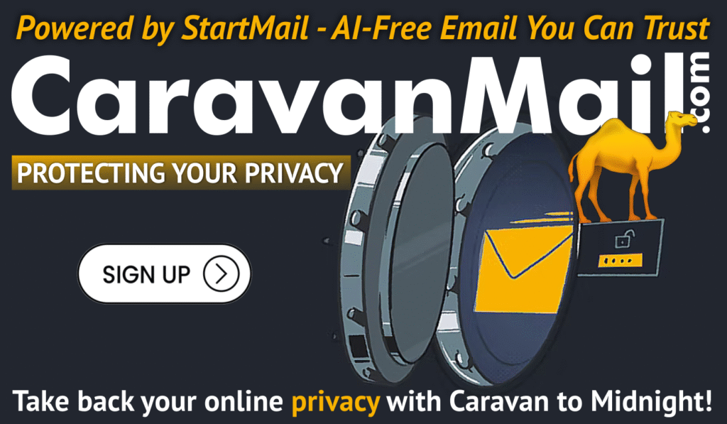 It’s an encrypted, privacy-first email service powered by StartMail, designed for those who want their communication protected, without tracking, AI analysis, or data harvesting. Built for the Caravan to Midnight and Jellyfish News audience — and for anyone who values real privacy online.