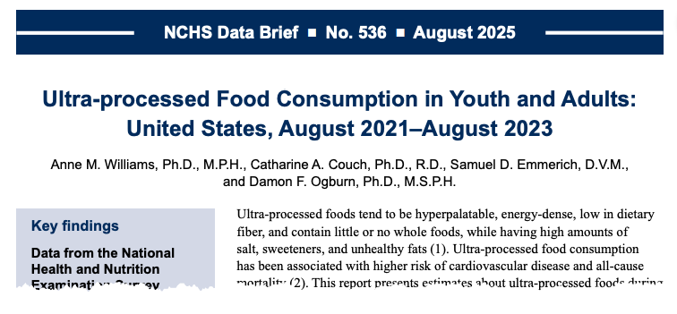 Here are the highlights from the CDC’s new report titled “Ultra-processed Food Consumption in Youth and Adults: United States, August 2021–August 2023”: