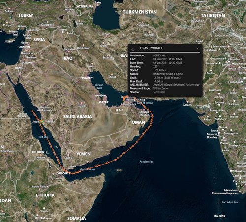 The vessel’s current positioning is in the Persian Gulf.