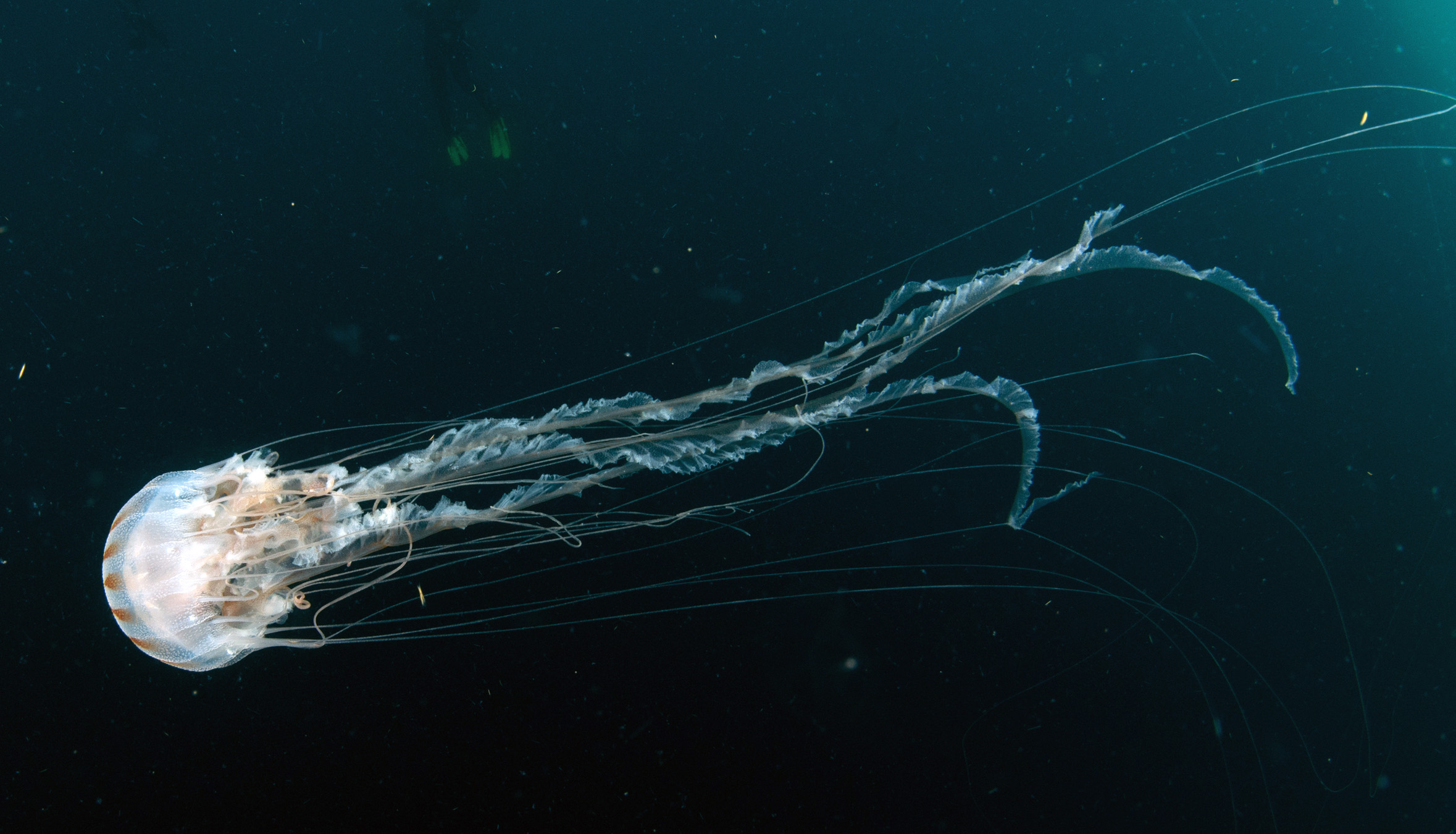 Artistic and stunning with its deep crimson hues, this breed of jellyfish hails from the arctic circle. It was first found by an unmanned craft 8,500 feet below the surface in the Canadian Basin, one of the least explored regions of the the arctic ocean. Spending its entire life as plankton, it does not reach a sessile stage, hence the underdeveloped appearance and lack of notable locomotion.